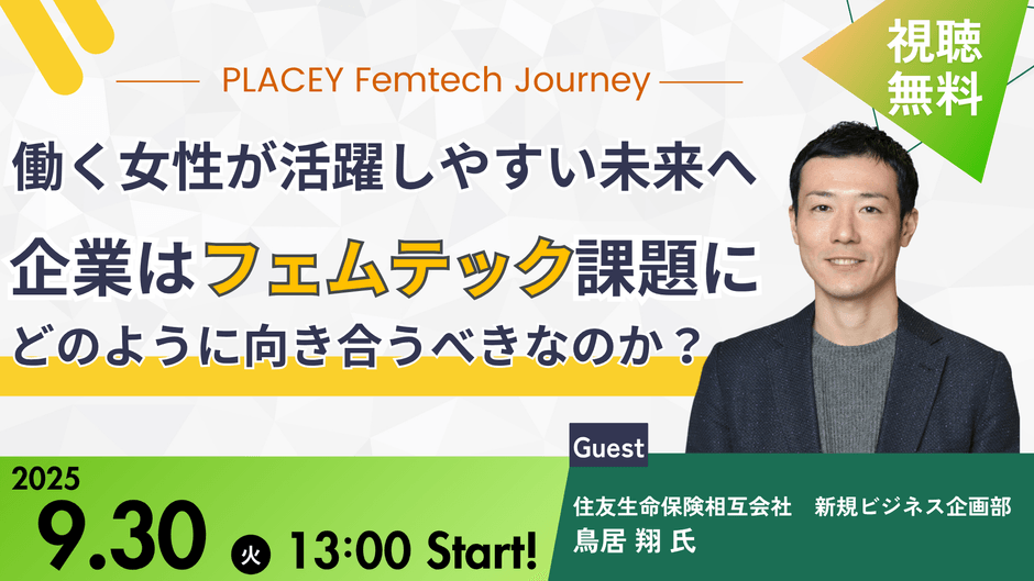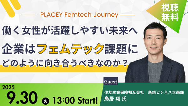 金融機関向けプロモーションサービスを提供する株式会社セミナーインフォ(本社:東京都千代田区 代表:小西 亘)は、PLACEY Femtech Journey「企業はフェムテック課題にどのように向き合うべきなのか?」を2025年9月30日に開催いたします。