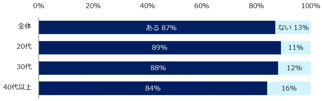転職にあたって、転職先での人間関係に不安があるか伺ったところ、87%が「ある」と回答しました。年代を問わず8割以上の方が人間関係への不安を抱いていることが分かりました。
