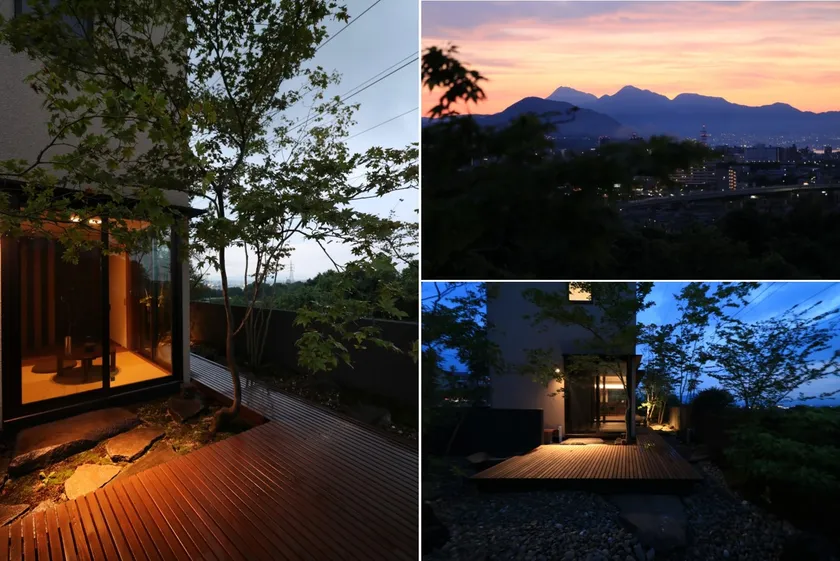 西側に沈む夕日の美しさに魅了されて、この土地に家を建てることを決めた尾崎夫妻。2人にとっての一番のお気に入りの時間は、緑を楽しむために庭につくったウッドデッキに座って夕焼けを楽しみながらの晩酌だそう。