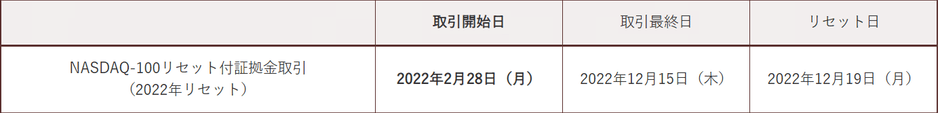 2022年2月28日(月曜日)よりマネースクエアCFDにおいても、2022年リセットの「NASDAQ-100リセット付証拠金取引」のお取引が可能になります。