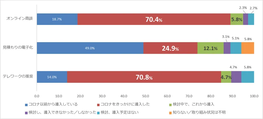 ■「オンライン商談」や「テレワーク」の導入きっかけは、70%以上が新型コロナウイルス!
