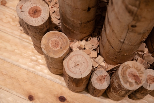 meet tree SPAでは、自社グループ製材工場で出たヒノキ等のおが粉を使用しています。おが粉の細かさは約1mmでフカフカの感触を楽しめます。自社グループ製材工場でとれたおが粉を使用する酵素浴は日本初です。