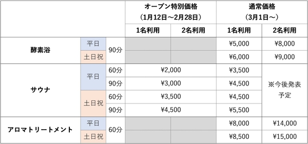 SPAのテーマは「森林浴の癒しを身近に」。建物の木材はすべて国産材を使用し、五感を使って森林浴を体験できるような、酵素浴、サウナ、アロマトリートメントといったメニューを取り揃えています。どのメニューも完全個室での提供のため、ひとり森の中で佇んでいるような癒しの空間をお届けします。2023年1月12日(木)にグランドオープンを予定しており、2023年1月10日(火)から公式サイトで予約受付を開始します。