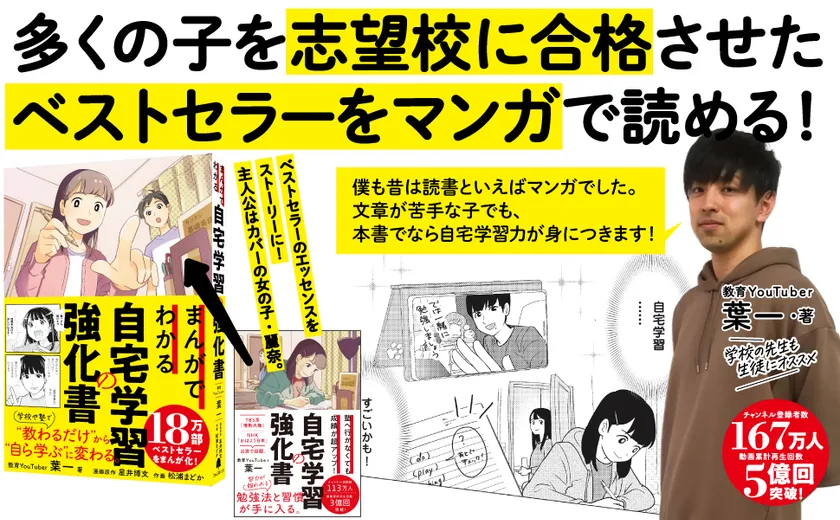 多くの子どもたちを志望校に合格させた 18万部のベストセラーをマンガで読める! 『まんがでわかる自宅学習の強化書』を2月9日に発売