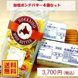 よつ葉加塩ポンドバター4個セット+雪印メグミルクポーションホイップバター