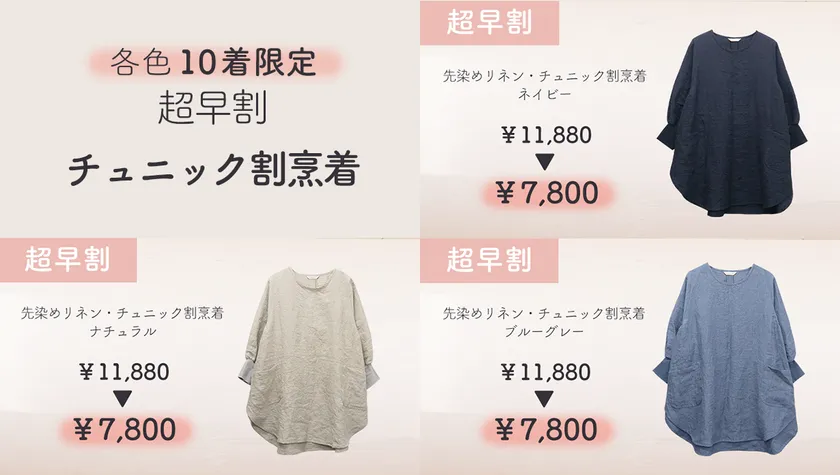 お客様の声から生まれたリネン割烹着・もんぺ・ターバン