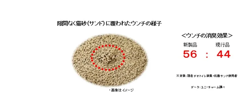 そこでこの度、猫砂の粒の大きさが現行品の約30%※1と小さな『デオトイレ 消臭・抗菌サンド』小粒 を、全国で発売します。