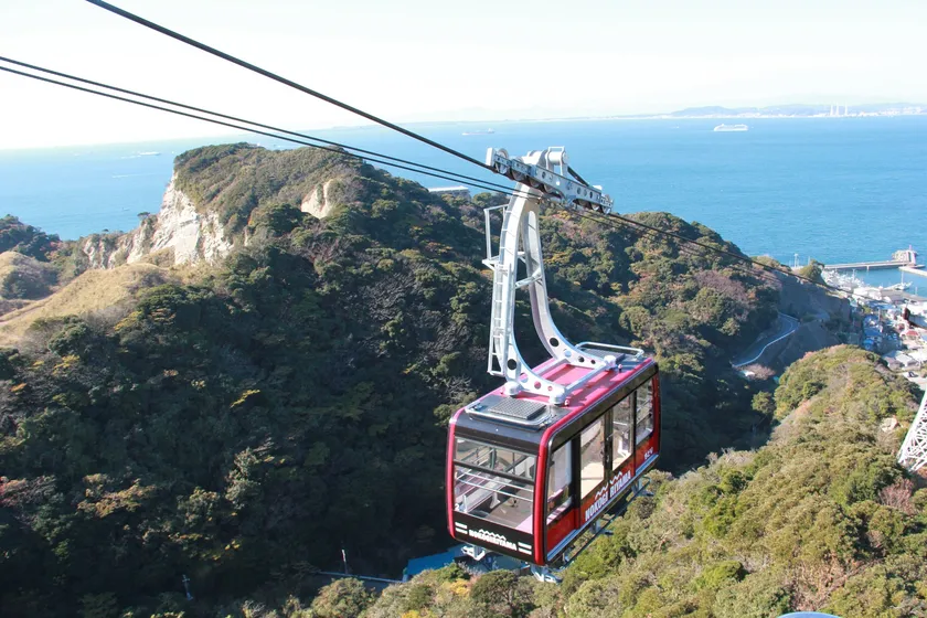 標高329.5m、鋸山の山頂まで約4分の空の旅。展望台からの景色は、富士山や三浦半島など大パノラマが広がります。