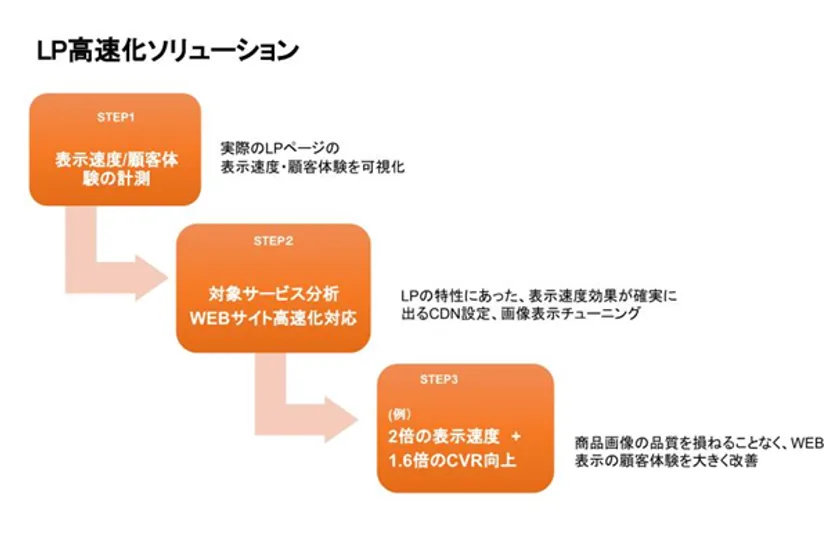 「LP高速化ソリューション」は、スモールEコマースからラージEコマースまで、お客様のニーズにあわせて、各種対応メニューを用意しています。