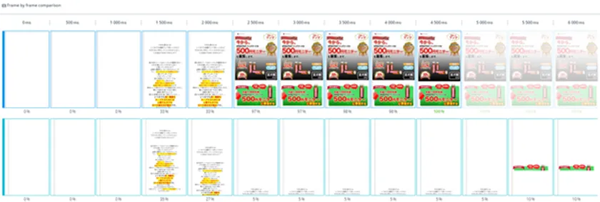 フィルムストリップで見る高速化の効果。上が導入後。下が導入前の状態。