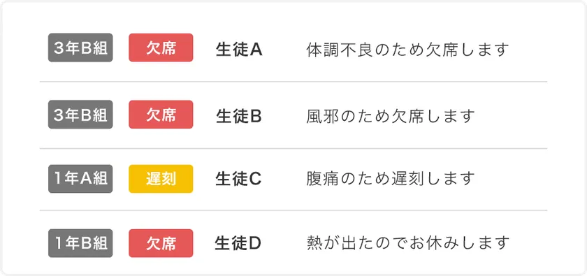 ◆集計、一覧化しての確認が可能な遅刻・欠席・早退連絡機能