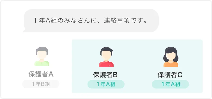 ◆「学年」や「クラブ・部活動」等、特定の保護者・児童生徒向けにメッセージを一斉に配信するセグメント配信機能
