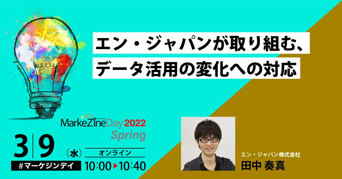 人材採用・入社後活躍のエン・ジャパン株式会社(本社:東京都新宿区、代表取締役社長:鈴木孝二)でデジタルマーケティングの責任者を務める田中奏真が、2022年3月9日(水)に開催される「MarkeZine Day 2022 Spring」(https://event.shoeisha.jp/mzday/20220309)に登壇します。