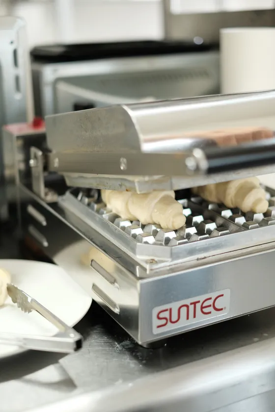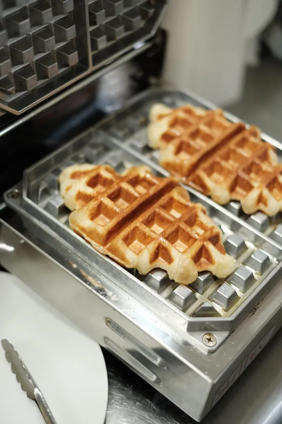 AOP認定のフランス産発酵バターをたっぷりと練り込んだ生地を、ご注文ごとにワッフルメーカーで焼きあげています。