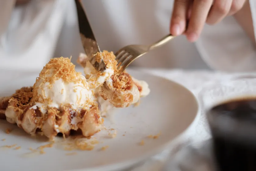 ・見た目はワッフルなのに食べてみるとクロワッサン!表面はザクザク中はふわもち!
