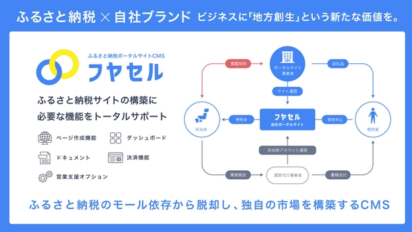 ふるさと納税特化型CMS「フヤセル」を活用し、寄附獲得を強化。事業者がポータルサイトを運営するための機能がパッケージされています。寄附の使途が明確になることにより、寄附者からの信頼獲得にも繋がります。