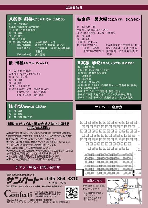 入船亭扇好 / 古今亭菊太楼 / 桂米福 / 三笑亭夢丸 / 桂伸ぴん
