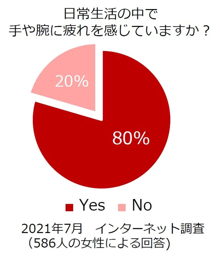 ■約8割の女性が手と腕に疲れを感じています