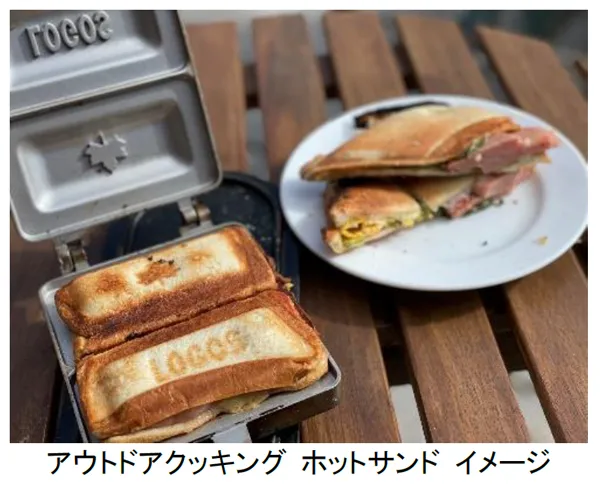 森のCafe(※1)テラス席エリアにおいて、ホットサンドメーカーを使ったホットサンド作りや、焼きマシュマロをビスケットで挟むスイーツ“スモア”作りなど、アウトドアクッキングを実施します。