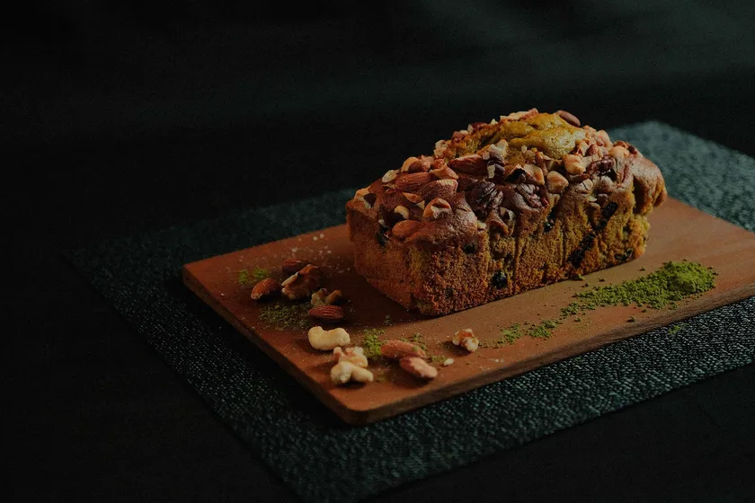 香り高い抹茶生地に、ナッツと5色の豆のアクセント。