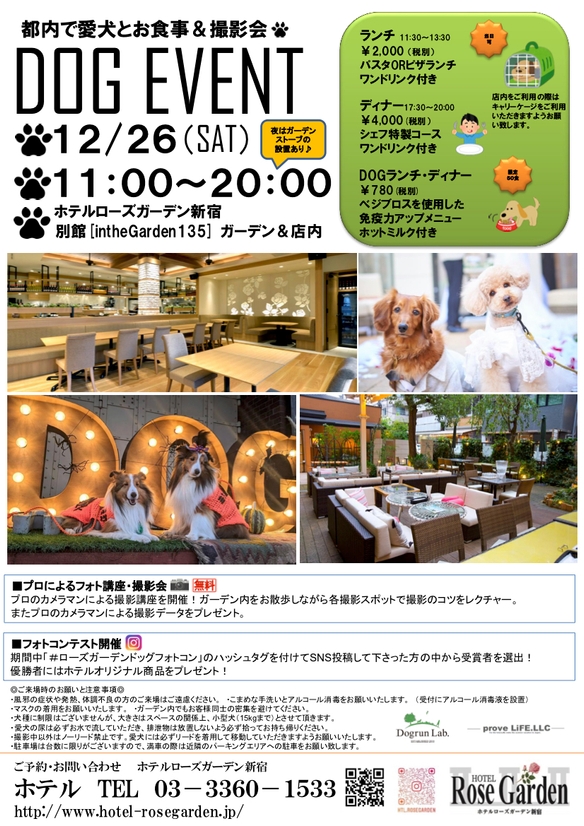 東京都内の愛犬家必見♪12/26日(土)【ホテルローズガーデン新宿】にて、ドッグフォトイベントを開催!