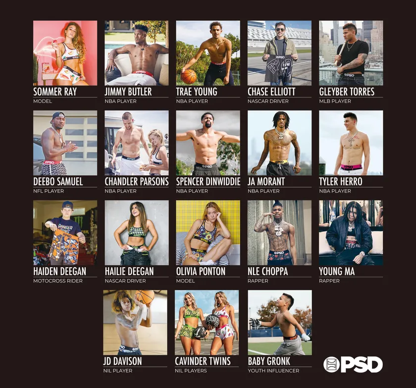 アンダーウエアは全ての服の基盤であり、快適であることを重要視した彼らは、快適性に加え、機能性とデザイン性を兼ね備えた他にはないアスレジャー・アンダーウエアを生み出しました。着心地が良く、動きやすく、スタイリッシュなPSDは、その商品力の高さからNBAプレーヤーのジミー・バトラーやジャ・モラント、フィットネスモデルのソマー・レイやラッパーのヤング・エムエーをはじめ、トップアスリート、モデル、ラッパーやモータースポーツドライバー等に支持され、その人気は瞬く間に全米に広がりました。
