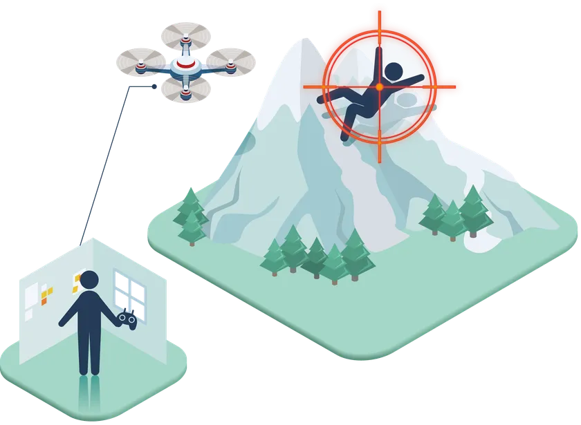 [media/image6.jpeg]夜間の遭難者捜索をドローン活用により支援し、遭難者の早期発見に貢献するサービスです。24時間対応で受付を行い、ドローンスペシャリストが現地へ急行します。赤外線カメラで撮影・データ解析・報告までを対応する他、ドローンに搭載した照明を用いた捜索隊の誘導等も可能です。必要機材は「NIGHT HAWKS標準システム」として常備し、捜索支援時に最適な状態で使用できるように整備されています。