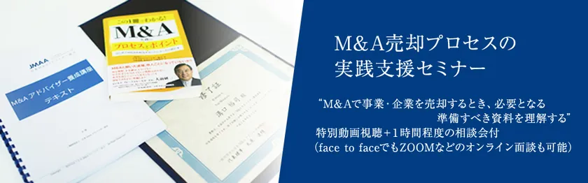 一般財団法人日本M&Aアドバイザー協会(本社:東京都台東区、代表理事/会長:大原 達朗、以下「JMAA」)が中小企業のM&Aの売り手に向けた新しいセミナー「M&A売却プロセスの実践支援セミナー」の提供を開始します。