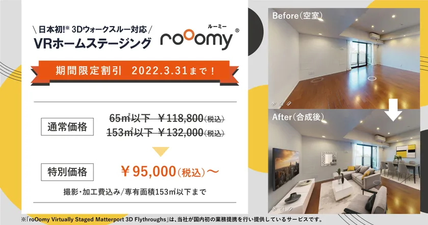 バーチャルホームステージング「roOomy(ルーミー)」 期間限定 割引キャンペーンを3月31日まで実施