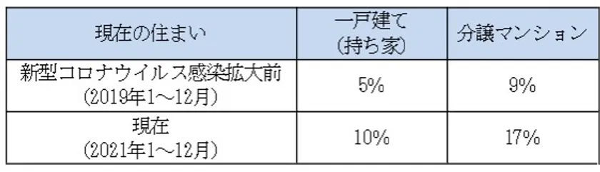 現在の住まい:一戸建て(持ち家)10% 分譲マンション 17%