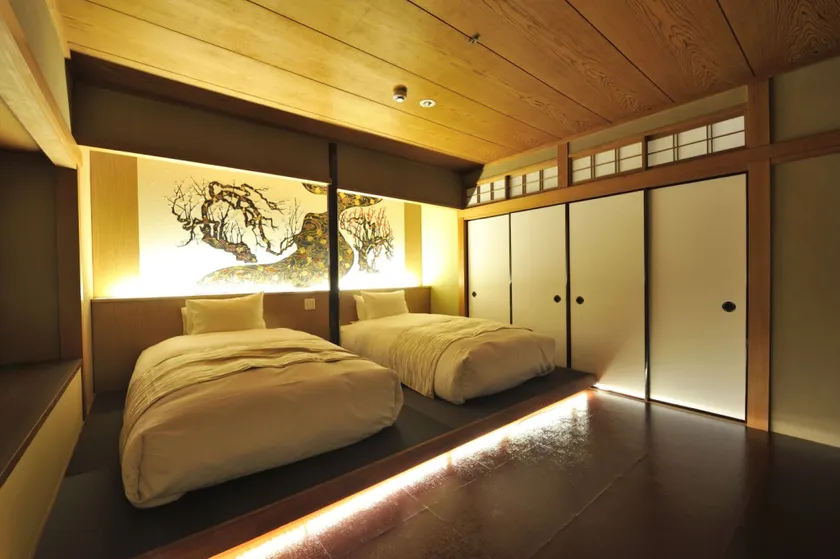 築110年以上の町家が立ち並ぶ、京都の路地一体をリノベーションした全23室の旅館。昔の花街を思わせる街並みで、外の世界と隔離された非日常を味わえます。京都の自然美をテーマとした「TAKE」「MIZU」「IWA」「HANA」「HA」の5つのカテゴリーを設けており、それぞれのテーマから着想を得た内装・インテリアが楽しめます。