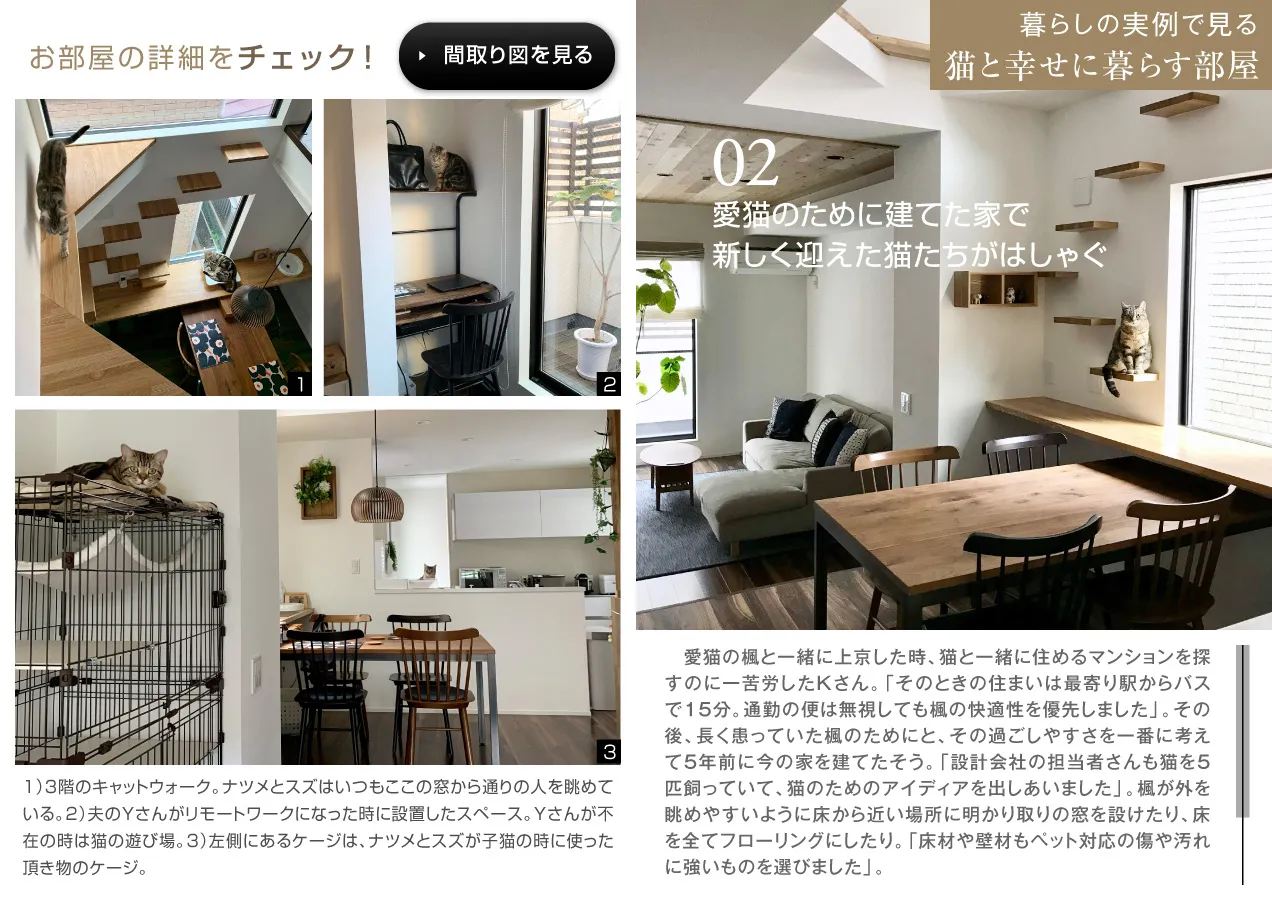 ふんわり柔らかなシルエットと人間よりも高い体温。おうちにいるだけで心を穏やかにしてくれる猫ですが“可愛いから”“癒してくれるから”という自分本位な気持ちだけでお迎えするのはNG。猫好きさんからこそ持てる「猫ファーストなマインド」で、猫にとって、人にとって快適な部屋づくりを目指しましょう。キャットステップや猫用爪とぎなど、工夫をこらした部屋で猫と幸せに暮らす3名のお部屋をご紹介します。