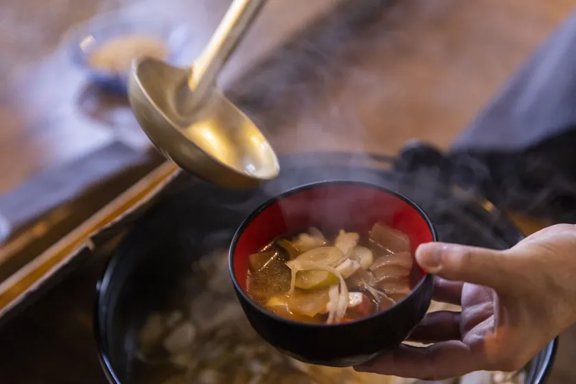 雪国観光圏オリジナル調味料を使った焼きおにぎりと新潟の郷土料理“のっぺ”