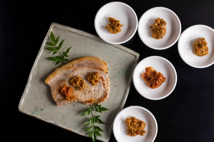 豚肉のグリル 雪国観光圏オリジナル調味料添え