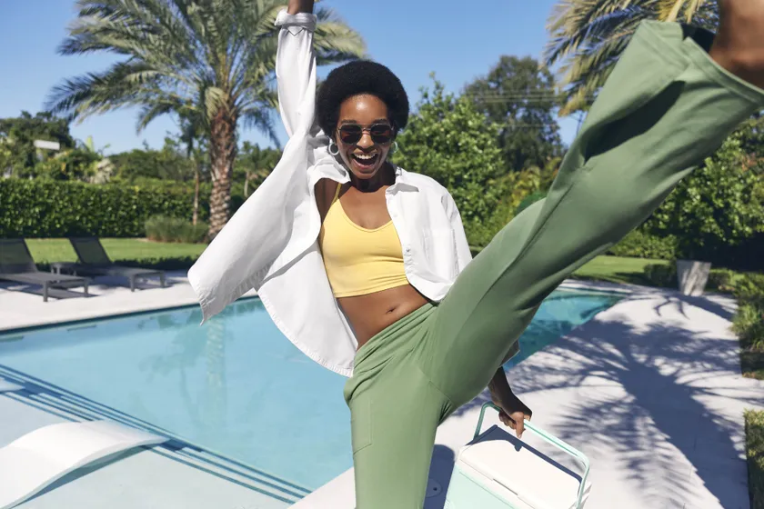 Aerieのパンツラインナップに新しく加わった「スーパーフレアレッグパンツ」は、軽量でソフトな肌触りを追求しています。どんなスタイルにもフィットする汎用性の高いパンツに仕上がっています。オーバーサイズのトップスと合わせて、リラックススタイルを可能にし、クロップド丈のトップスと合わせて、さらに快適な着心地を提供するアイテムです。