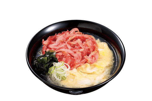 塩だしつゆに明石焼きをヒントとしたふわふわ玉子と名物“紅生姜天”をトッピングしました。ふわふわ玉子が塩だしと融合し、紅生姜天が味わいとしてアクセントになっています。“紅白”の見た目はお正月にぴったりです。