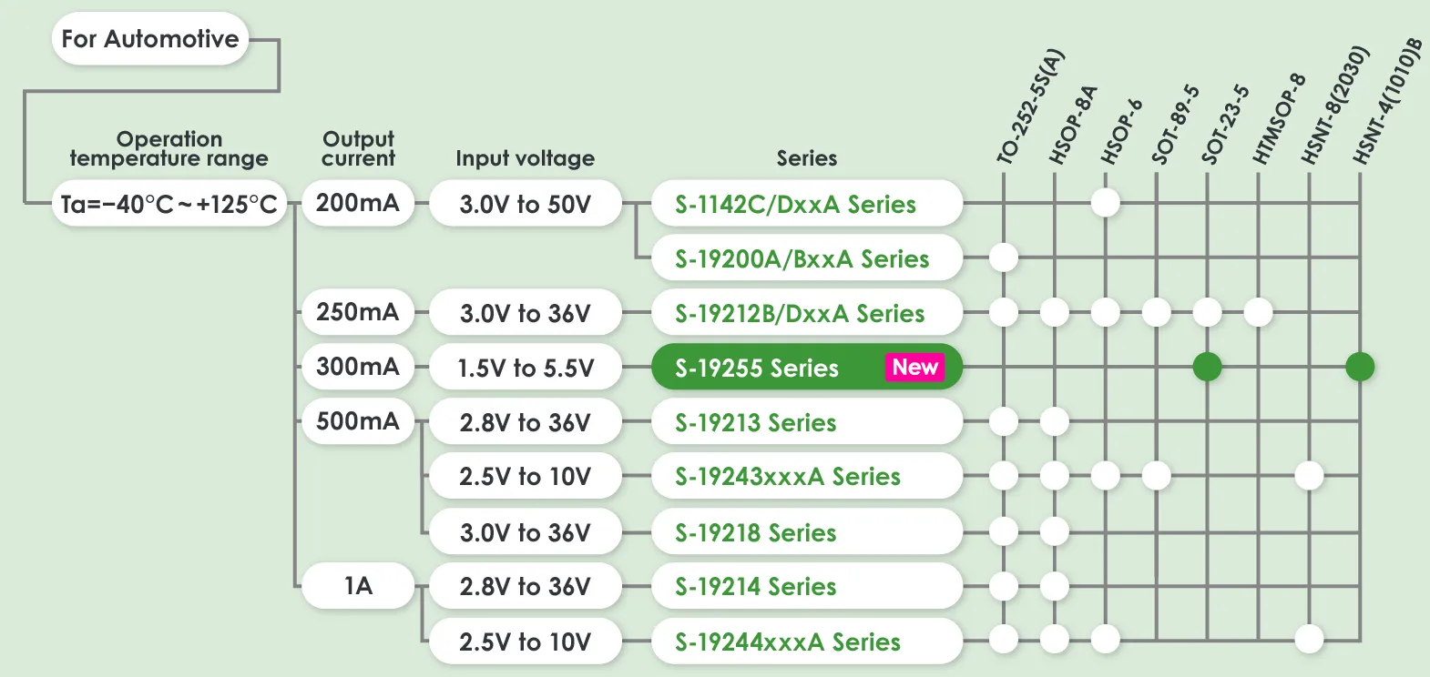 業界最小(※1)・高PSRR 車載用 LDOリニアレギュレータ「S-19255 シリーズ」を発売