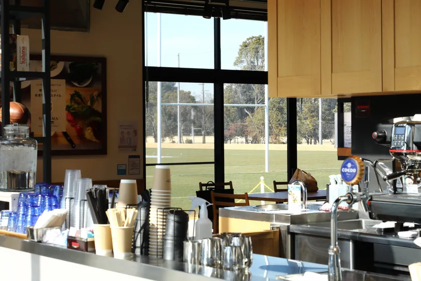 熊谷スポーツ文化公園内「埼玉パナソニック ワイルドナイツ」のクラブハウスに併設し、チームの練習を眺めながら食事が楽しめます。メニューは地元の素材を使ったワンプレートランチや、今話題のデザートマリトッツォが人気。