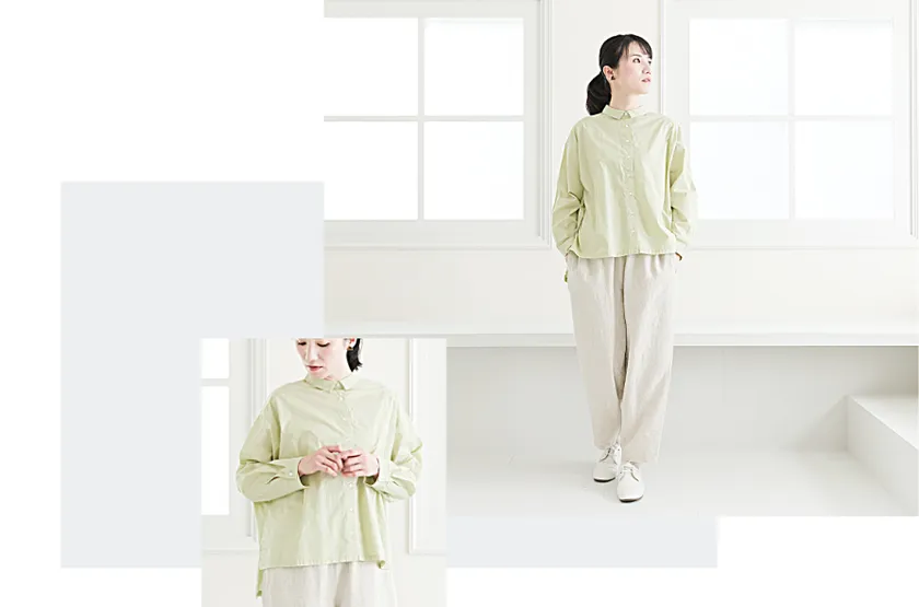 環境や生産者に配慮したオーガニックリネンの生地は、洗うほどに風合いが出て肌なじみが良く、日常のスタイリングにそっと寄り添います。これが、素材の良さへのこだわりです。