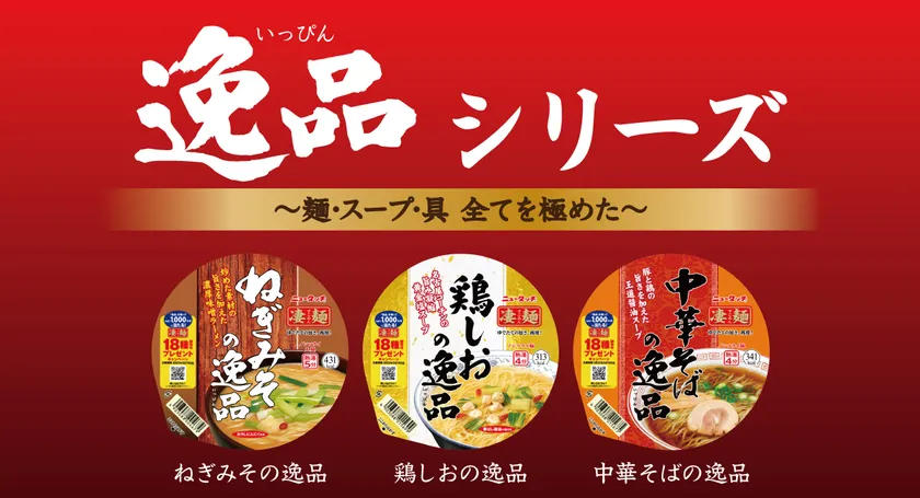 ヤマダイ株式会社(本社:茨城県結城郡 代表取締役社長:大久保 慶一)は、ノンフライカップ麺ブランド「ニュータッチ凄麺」の逸品シリーズ「ねぎみその逸品」「鶏しおの逸品」「中華そばの逸品」の3品を2022年3月14日(月)より全国のスーパーマーケット、ドラッグストア等で同時リニューアル発売いたします。