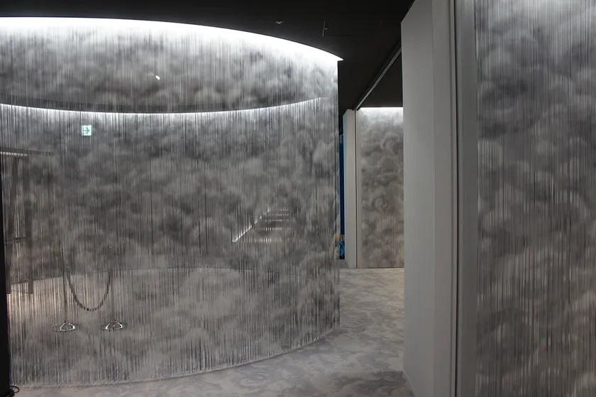 今回ラインビューが出展するエリアは「NIPPONプレミアムデザイン」と呼ばれ、その名の通り日本ならではの伝統や技術の詰まった製品が集まっています。ラインビューは日本はもとよりこれから世界へとアピールし、販売していくことを目指します。今回私たちは桐生地域に伝わる「段染め」という染め技術と、最新のプリント技術によって生まれる新たな表情をストリングスカーテンで表現します。