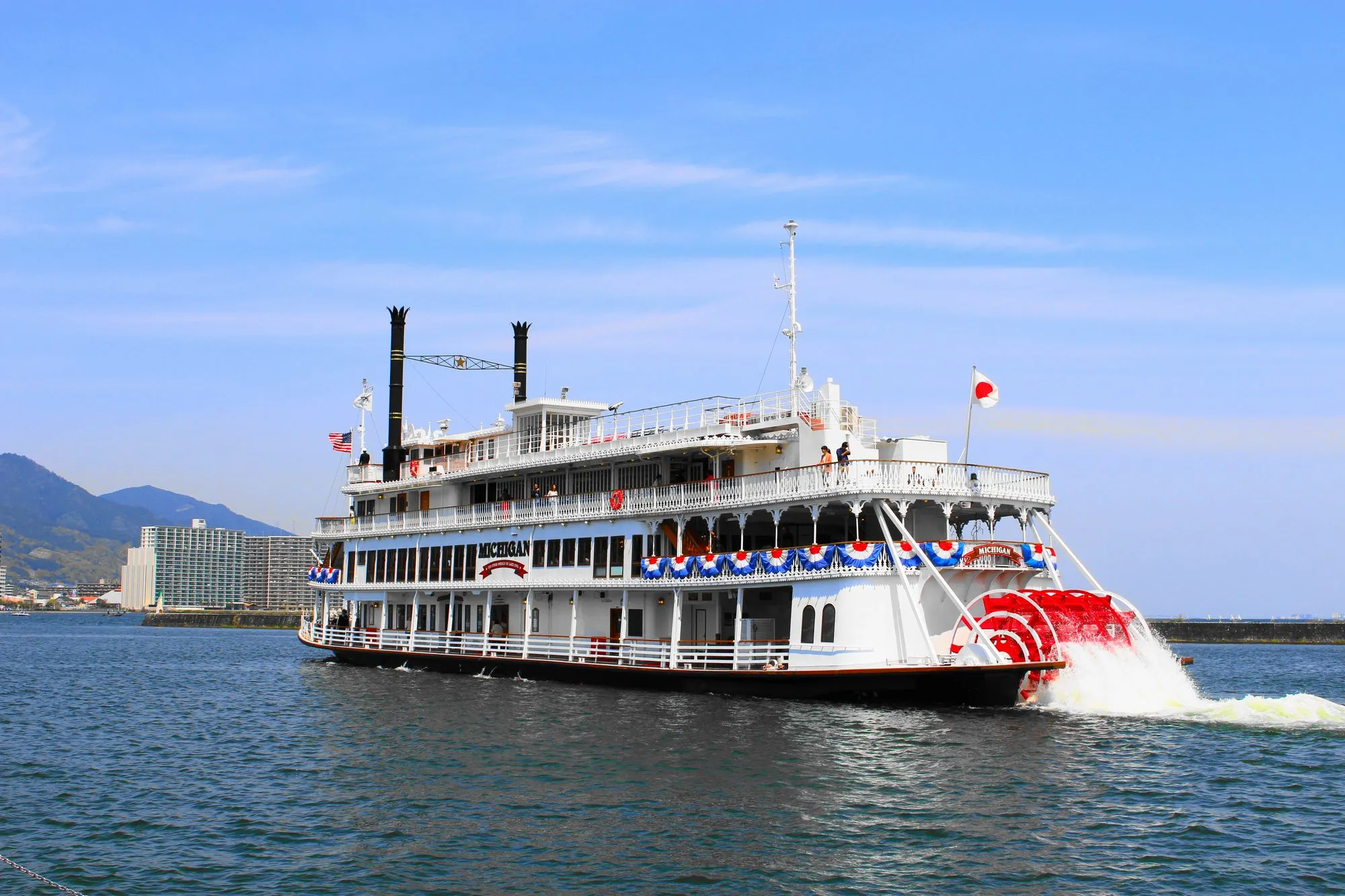 びわ湖観光のシンボル「外輪船ミシガン」。1982年の就航以来、これまでに乗船いただいた人数は延800万人以上。毎日の積み重ねで達成された乗船人数は、即ち、乗船いただいた方々の思い出の数でもあります。
