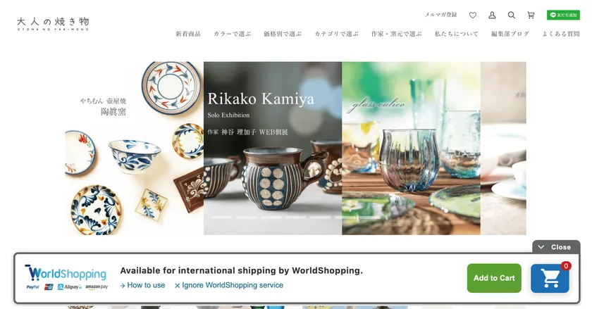 「大人の焼き物オンラインショップ」( https://otonayaki.com/ )は、海外販売(越境EC)対応のパートナーとして、多言語対応、海外決済、海外配送を一気通貫で行うジグザグの「WorldShopping BIZ」を採用。