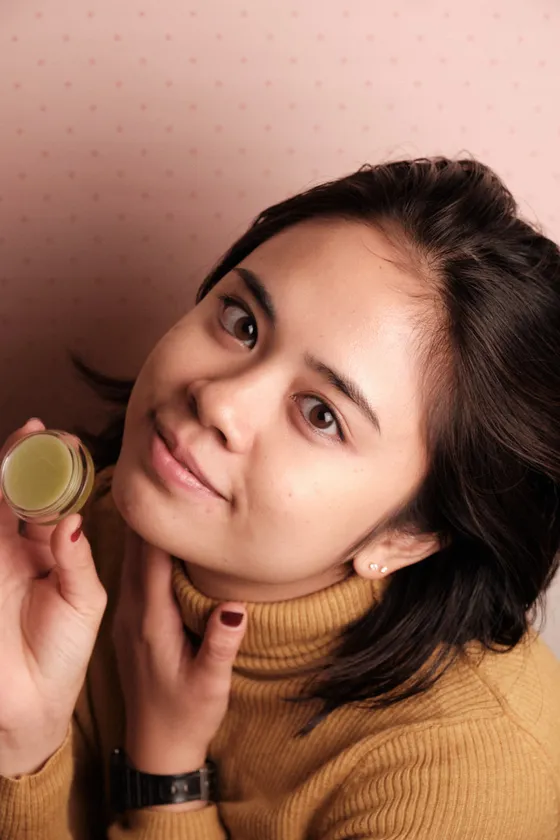 抹茶リップバーム使用例