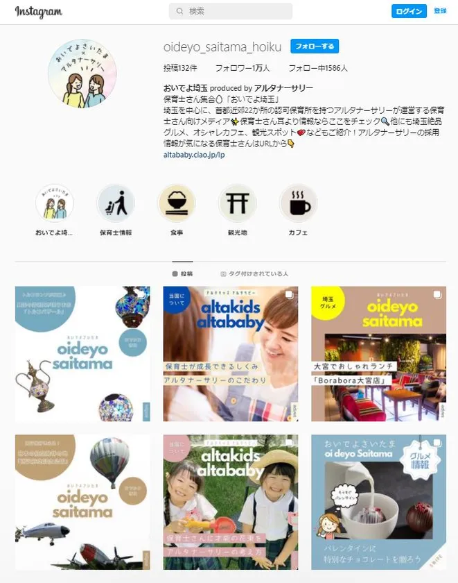 埼玉県を中心に認可保育所を22園運営している株式会社アルタナーサリー(所在地:埼玉県さいたま市、代表:上田 厚作、以下「当社」)は、2022年2月17日(木)からフォロワー数約1.1万人のSNS(インスタグラム)アカウント「おいでよ埼玉」と、当社が運営するランディングページ(LP)を連携させたWebプロモーションの展開を開始しました。