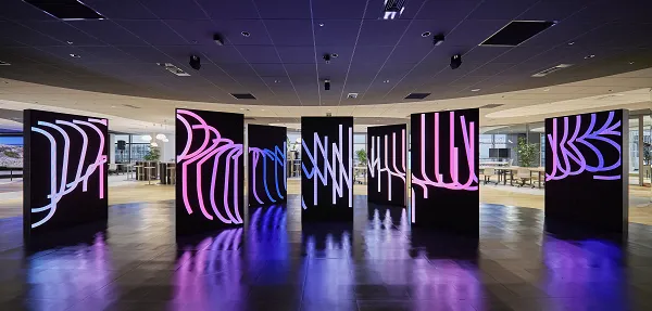 <1>「OPEN HUB Park」の入り口には没入感のあるデジタルサイネージ「OPEN HUB Monoliths」を設置し、来訪者のインスピレーションを高揚させる体験を提供します。