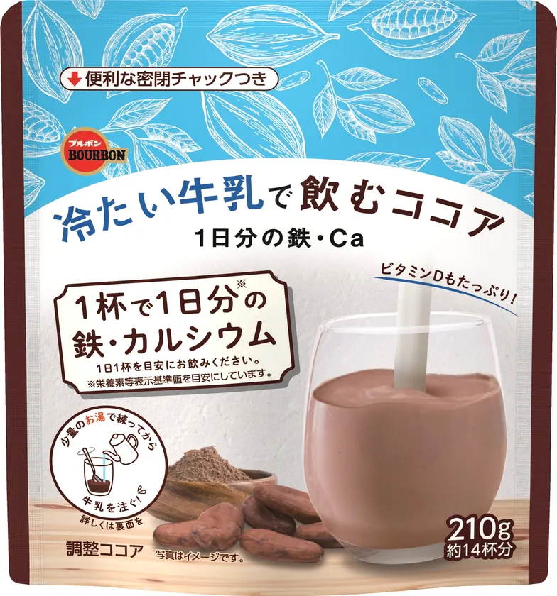 ブルボン、鉄・カルシウム・ビタミンD配合の甘さ控えめココア 「冷たい牛乳で飲むココア1日分の鉄・Ca」を 3月8日(火)に新発売!
