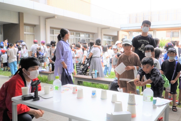 今回、学生たち(21名)は、6月から夏休みの期間も定期的に集まり、イベントの発案、企画、チラシのデザイン、店舗作成、運営と全てのゲームを手作りし、試行錯誤しながら「実践的な学び」を修得することができました。また、子どもたちは、輪投げ、射的、ひもひきなど学生手作りのゲームに大喜びでした。