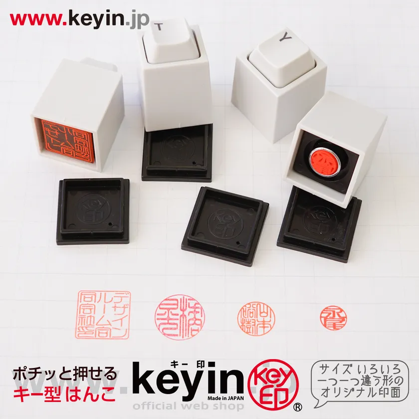デザインルーム合同会社(所在地:神奈川県相模原市)は、2022年2月24日に、PCキーボードからキーを一つ抜きとったような朱肉のいらない浸透印「キー印(keyin)」(2016年より発売)の種類を大幅に増やし、印面オーダーの自由度を増やしました。また、オフィシャルwebショップでは、キー印デザイナーがフォントをベースに一つ一つ陰影にあわせた形に調整しオリジナルの印面を作ります。