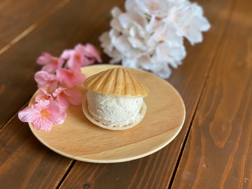 観光客の方だけでなく、地元の方にも愛されているこのモナカアイス。味もバリエーションがあり、今回は季節限定の桜モナカアイスとなります。